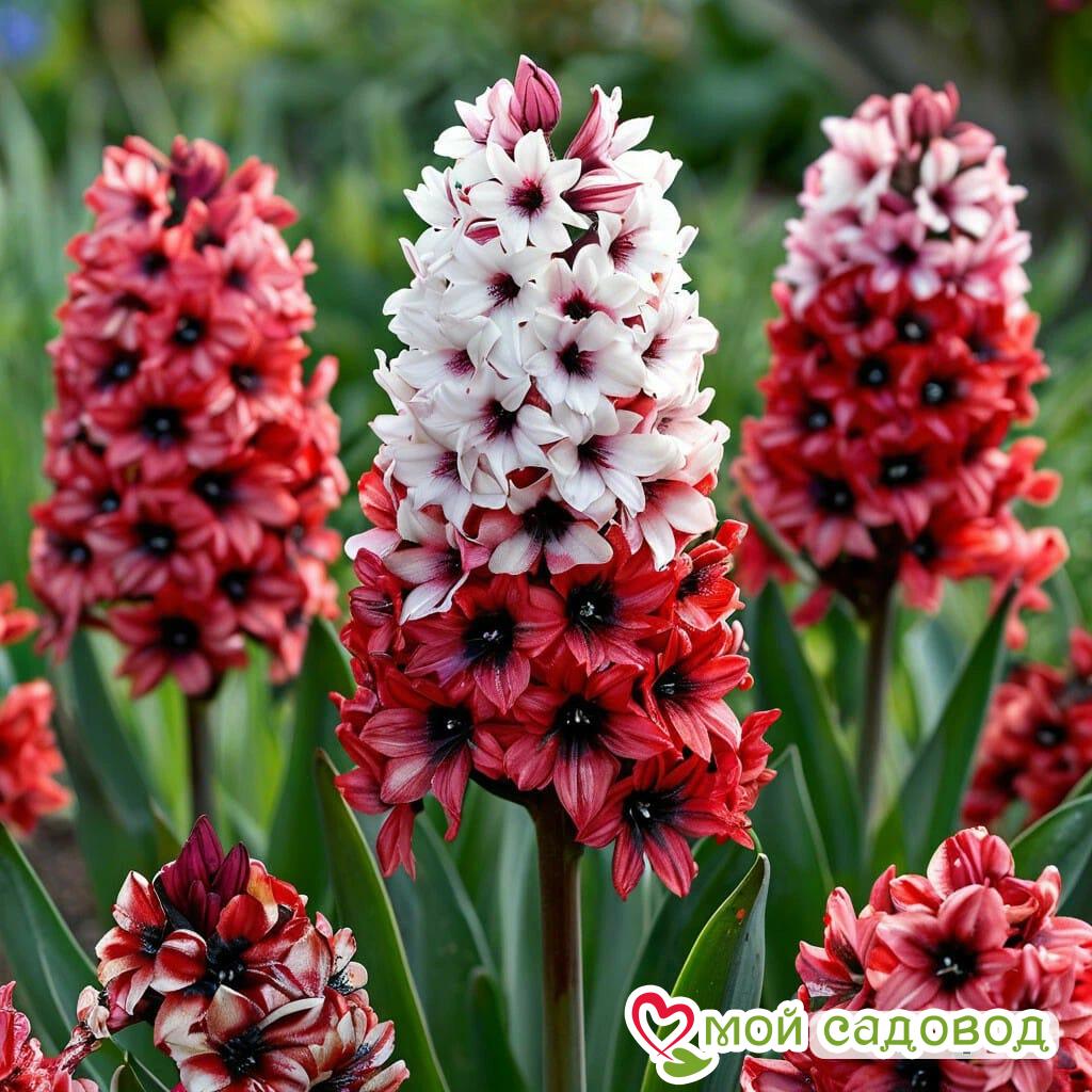 Гиацинт «Скай Гарден»: восходящее солнце в вашем весеннем саду Добро пожаловать в интернет-магазин “Мой Садовод”! Мы с восторгом представляем вам один из самых впечатляющих и редких сортов гиацинтов — “Скай Гарден” (Sky Garden). Этот гиацинт, словно миниатюрный восход солнца, захватывает дух своим уникальным цветовым градиентом, переносящим вас в мир мечтаний и весеннего обновления. “Мой Садовод” — ваш надежный проводник в мир прекрасных растений, предлагающий только лучшие саженцы для создания вашего личного райского уголка! Гиацинт «Скай Гарден» — настоящее произведение искусства природы. Его нежные цветки, окрашенные в неповторимый градиент от насыщенного красного у основания до кристально-белого на вершине, создают эффект восходящего солнца, наполняя сад теплом, светом и позитивной энергией. Представьте, как этот прекрасный гиацинт будет смотреться на вашей клумбе, в бордюре или в контейнере на балконе, притягивая взгляды и вызывая восхищение у всех, кто его увидит. Основные характеристики гиацинта “Скай Гарден”: Уникальная окраска цветков: главная особенность этого сорта — его неповторимая и завораживающая окраска цветков. Свет бутона гиацинта «Скай Гарден» плавно переходит из насыщенного красного цвета у основания в чистый белый цвет на вершине, создавая эффект восходящего солнца или заката, отраженного в небе. Этот градиентный переход цвета придает цветкам особую глубину и объем, делая их невероятно привлекательными. Размер цветка: каждый отдельный цветок гиацинта «Скай Гарден» имеет небольшой размер, около 2-3 см в диаметре. Однако благодаря плотному расположению множества цветков в колосовидном соцветии создается впечатление пышного и обильного цветения. Длина соцветия может достигать 15-20 см, превращаясь в настоящий букет из нежных колокольчиков. Высота растения: Гиацинт “Скай Гарден” — это компактное растение, достигающее в высоту 20-25 см. Такая высота делает его идеальным для создания эффектных композиций на клумбах и в бордюрах, а также для выращивания в контейнерах на балконах и террасах. Он прекрасно впишется в любой ландшафтный дизайн, добавив ему элегантности и изысканности. Аромат: Гиацинт “Скай Гарден” обладает сильным, приятным и насыщенным ароматом, который наполнит ваш сад весенним настроением и создаст атмосферу уюта и гармонии. Зимостойкость: Гиацинт “Скай Гарден” обладает хорошей зимостойкостью, что позволяет выращивать его в большинстве регионов с умеренным климатом. Однако в регионах с суровыми зимами рекомендуется мульчировать посадки, чтобы защитить саженцы от вымерзания. Другие характеристики: Гиацинт «Скай Гарден» отличается ранним сроком цветения, устойчивостью к основным болезням и вредителям, а также относительной неприхотливостью в уходе. Он хорошо размножается и сохраняет свою декоративность при правильной агротехнике. Преимущества покупки саженцев в интернет-магазине “Мой Садовод”: Высокое качество саженцев: мы гордимся качеством наших саженцев гиацинта “Скай Гарден”. Все наши растения выращиваются в нашем собственном питомнике с использованием современных технологий и под строгим контролем специалистов. Соответствие сорту: мы гарантируем полное соответствие сорта «Скай Гарден» заявленному описанию. Вы получите именно то, что заказали, без каких-либо 